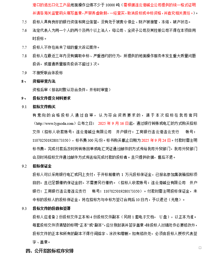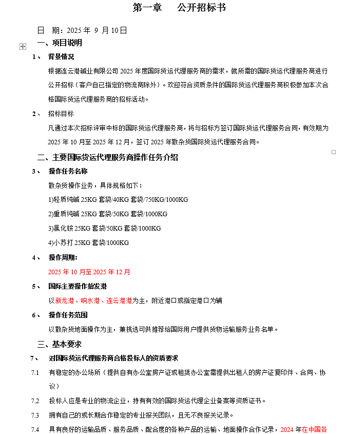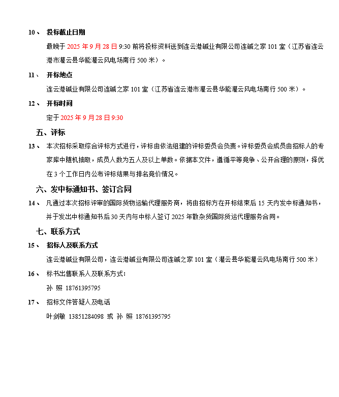 連云港堿業有限公司散雜貨國際貨運代理服務商項目招標公告