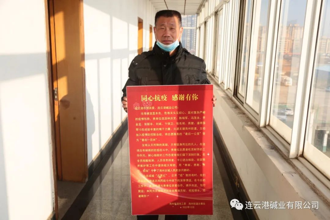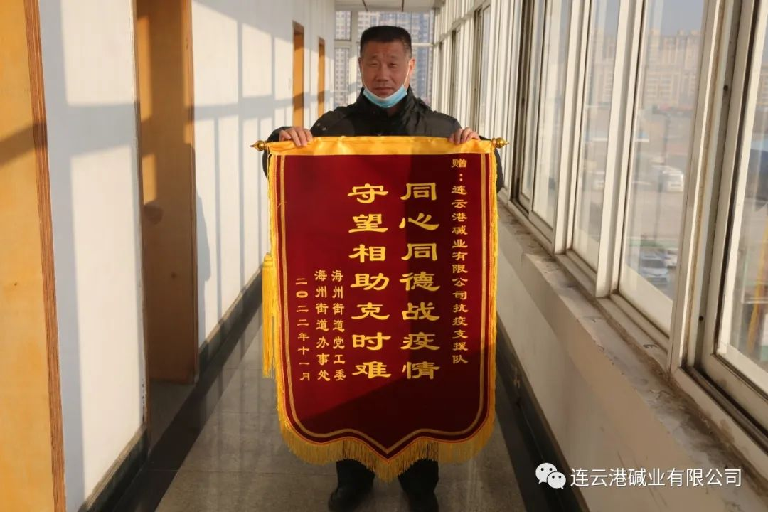 11月份疫情期間,根據市里統一安排,公司組織抗疫志愿者服務隊,全身心投入海州區疫情防控一線。公司職工林慶芝、陳瑞軍、馮茂永、李金龍、張新豐、劉斌、卞保衛、張名琦、高健、潘德強等10名職工積極響應公司黨委的號召,投入到社區志愿者服務行列,沖鋒在抗疫最前沿,為疫情防控作出了突出貢獻。近日,海州街道黨工委、海州街道辦事處送來了感謝信以及錦旗。