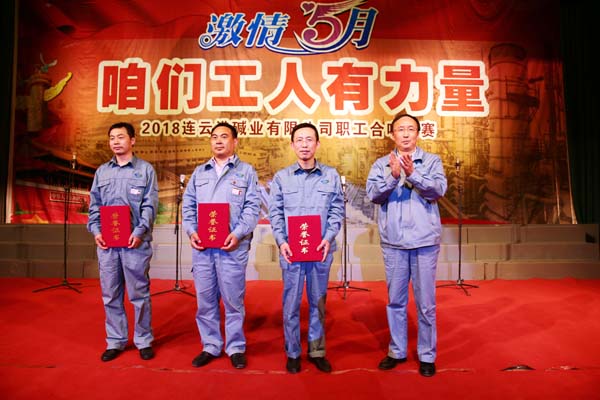 公司黨委書記、董事長張衛(wèi)民首先代表公司黨委向辛勤奮戰(zhàn)在各條戰(zhàn)線的干部職工致以崇高的敬意!在演出致辭中,他說,在堿業(yè)公司三十年的發(fā)展歷程中,全體職工與企業(yè)同呼吸、共命運(yùn),踏著《咱們工人有力量》的鏗鏘旋律,在改革、創(chuàng)新、發(fā)展的實(shí)踐中,在各自的工作崗位上斗志昂揚(yáng)、忘我工作。近日,公司被評為全市國資系統(tǒng)“先進(jìn)集體”稱號;“公司劃轉(zhuǎn)地方以來利潤首次突破8000萬元”被評為“2017年度國有企業(yè)最具影響力十佳事項(xiàng)”,經(jīng)營指標(biāo)同比大幅增長……每一項(xiàng)業(yè)績,每一次進(jìn)步,每一次成長,無不凝結(jié)著大家的勤勞與智慧、心血與汗水。
