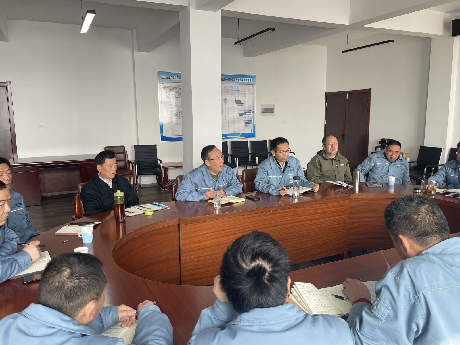3月6日上午9:30,公司在灌云新項目部召開搬遷升級改造項目例會。公司黨委書記、董事長張衛民同志,黨委副書記、副董事長、總經理姜自成同志,公司領導鈕維社、劉軍、焦旺盛、黃建德、高二飛、楊全及各部門領導等30余人參加了會議。