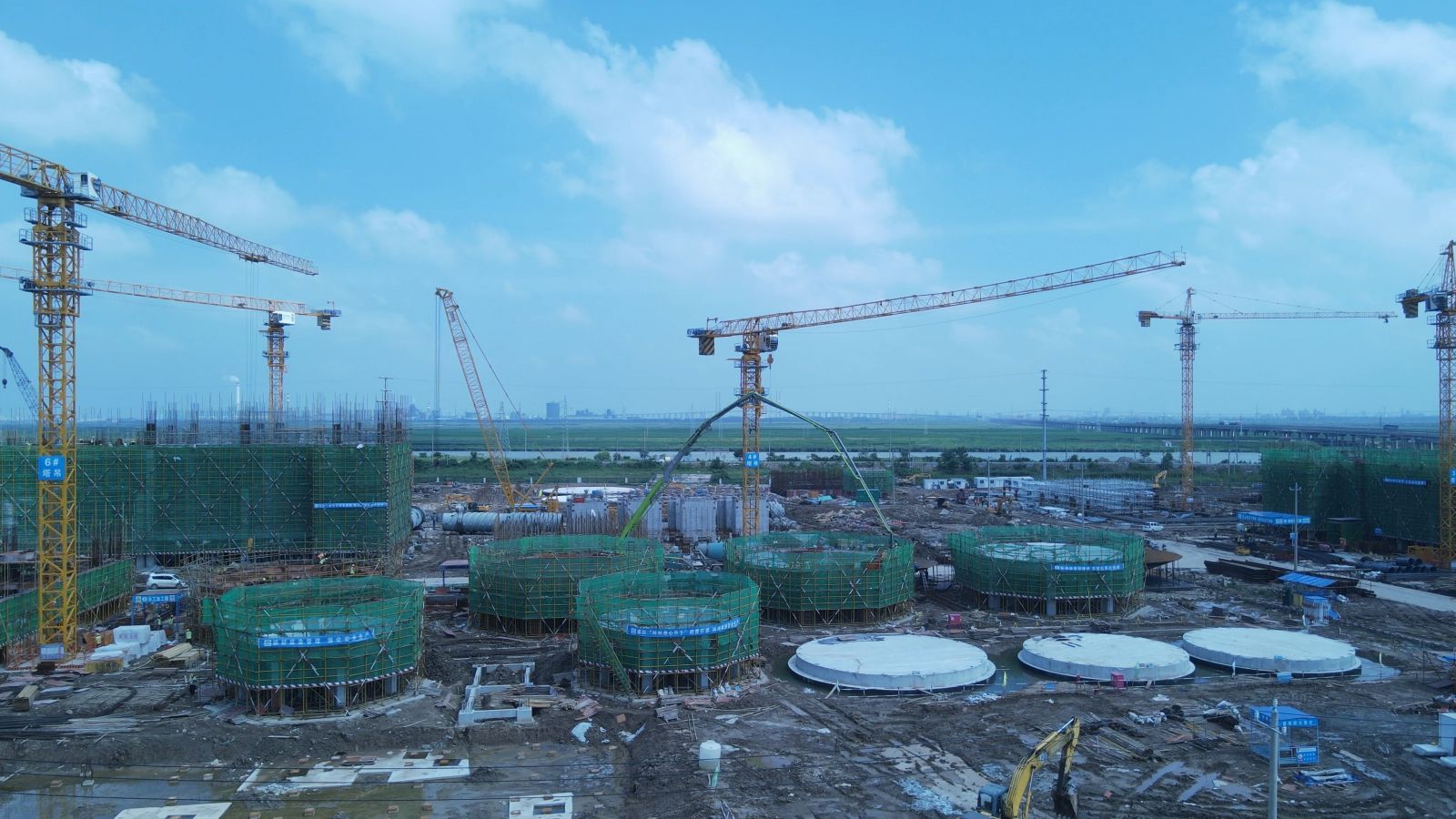 ⑸合成氨二標段271原料煤儲運破碎樓三層底板放線,#1轉運站頂層梁板柱澆筑,#2轉運站三層支撐架搭設,鋼筋綁扎、支模,角撐、斜撐、圍檁安裝;820合成氨循環水站清凈廢水池上部結構,塔下水池墻壁支模;711煤漿制備二層腳手架搭設,鋼筋綁扎,支模,安裝預埋件,初期雨水池池壁鋼筋綁扎,支模,支撐架搭設,套管安裝;762壓縮機廠房上部結構支模;761冷箱基礎冷箱防護墻拆模;膨脹機房上部結構鋼筋綁扎;712氣化框架立柱腳手架搭設,鋼筋綁扎,基礎承臺鋼筋綁扎,支模,防腐;灌注樁施工;842空分機柜間鋼筋綁扎;713渣水處理集渣池鋼筋清理,設備基礎預埋螺栓安裝。